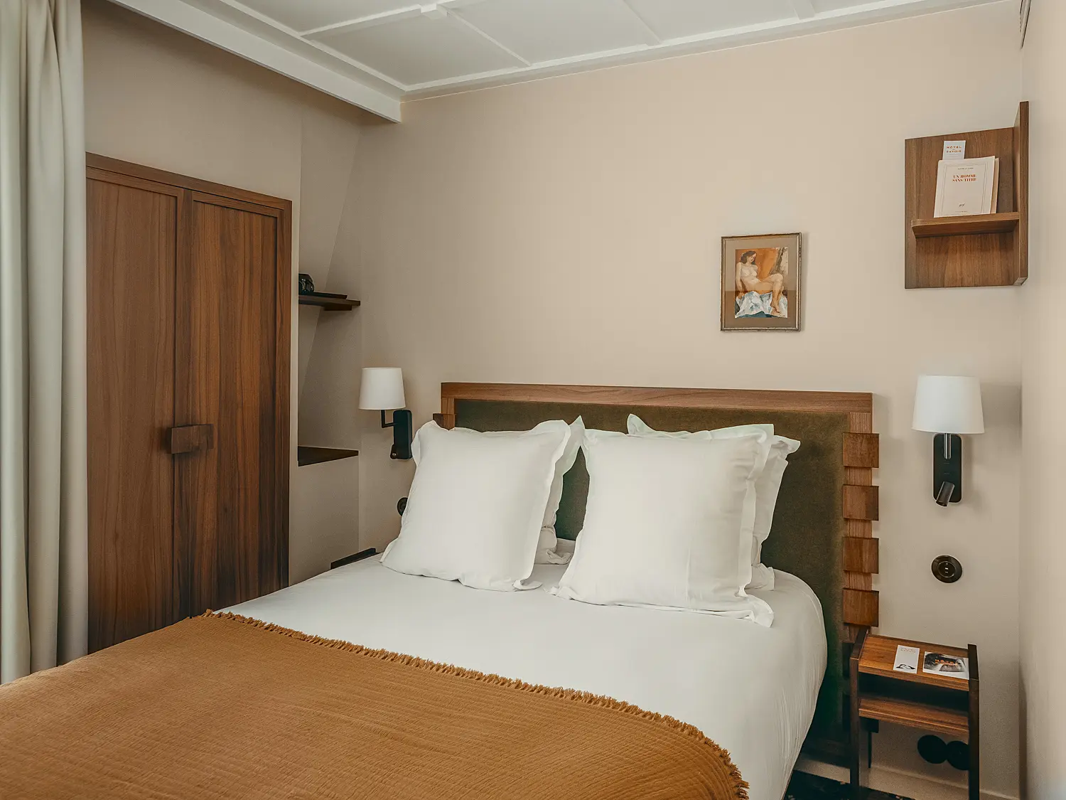 La chambre double classique est un véritable havre de bien-être, offrant une literie confortable fabriquée en France. Toutes les chambres donnent sur la rue Racine à Paris. Tout est conçu pour votre confort : un lit double ou des lits jumeaux sur demande, une salle de bain avec douche à effet pluie, des produits cosmétiques vegan « Terre de Mars » de grande qualité, un bureau, et le Wi-Fi pour compléter les équipements.